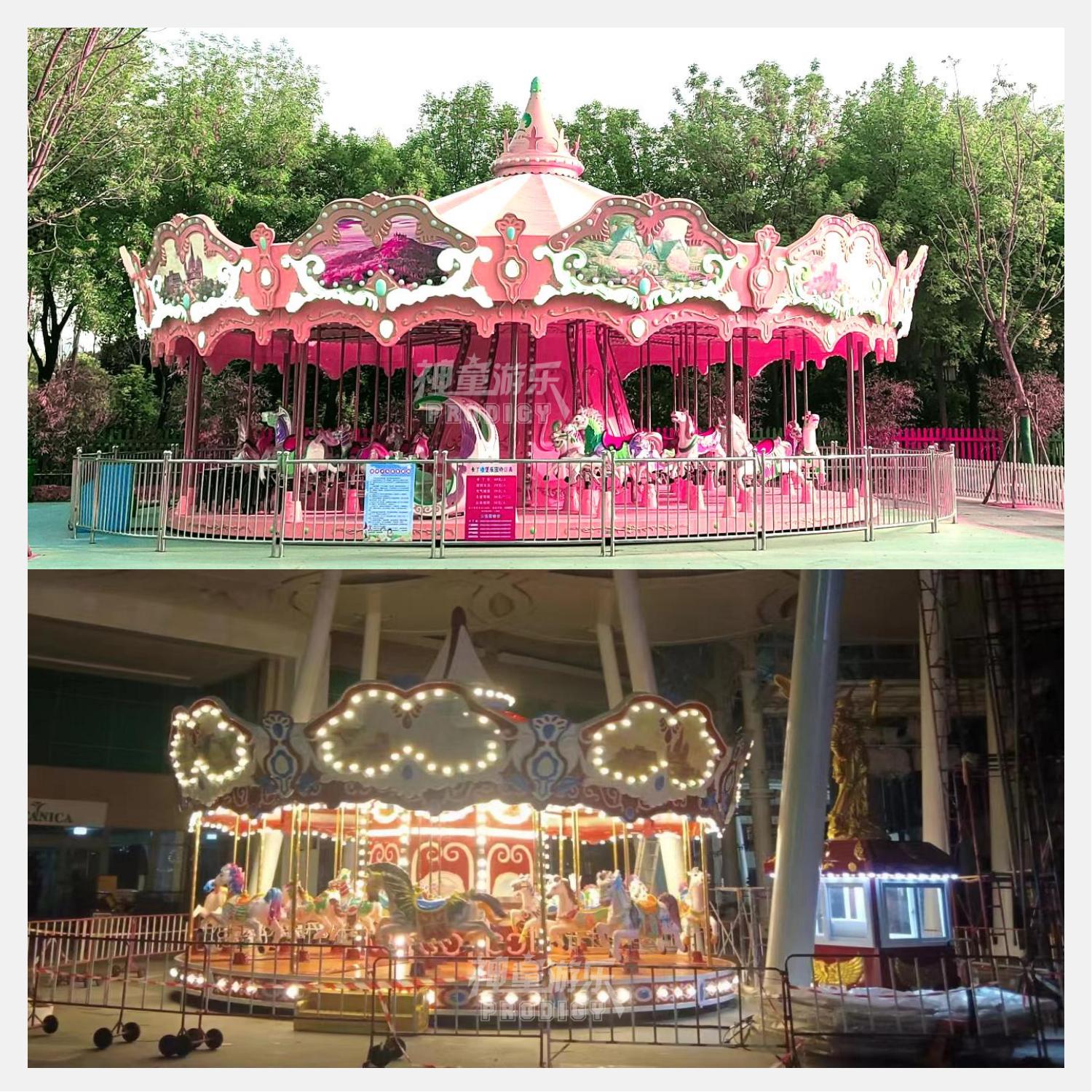 36座豪華轉(zhuǎn)馬采用夢幻飛檐、童話主題,適合公園、廣場嘉年華等主題。優(yōu)質(zhì)玻璃鋼材質(zhì),奢華外觀、華麗造型.做工精致. RGB裝飾燈,USB音樂設(shè)備 仿上驅(qū)動。 經(jīng)典的雙飛檐設(shè)計,嘉年華的動感呈現(xiàn),炫彩的燈光、華麗的造型,場地里最亮的星。
