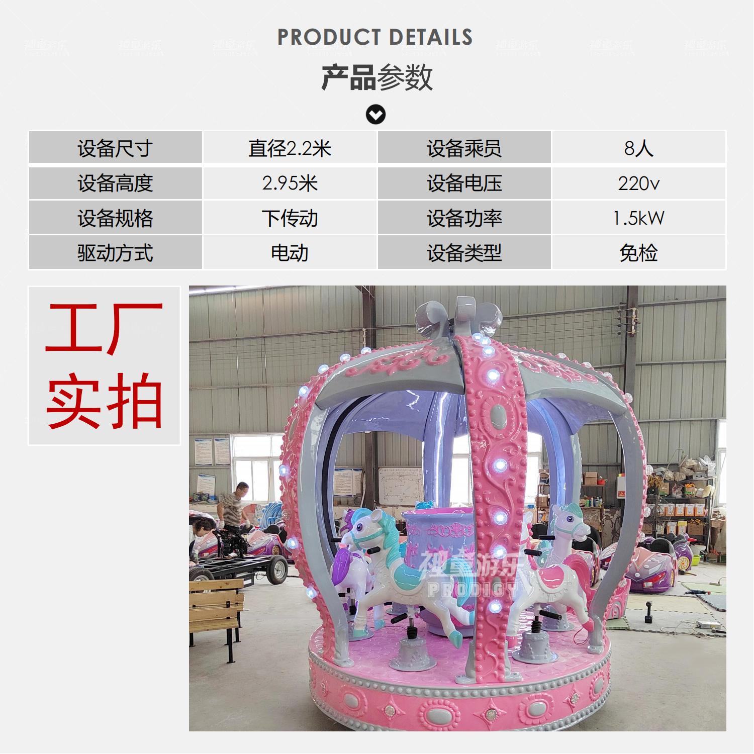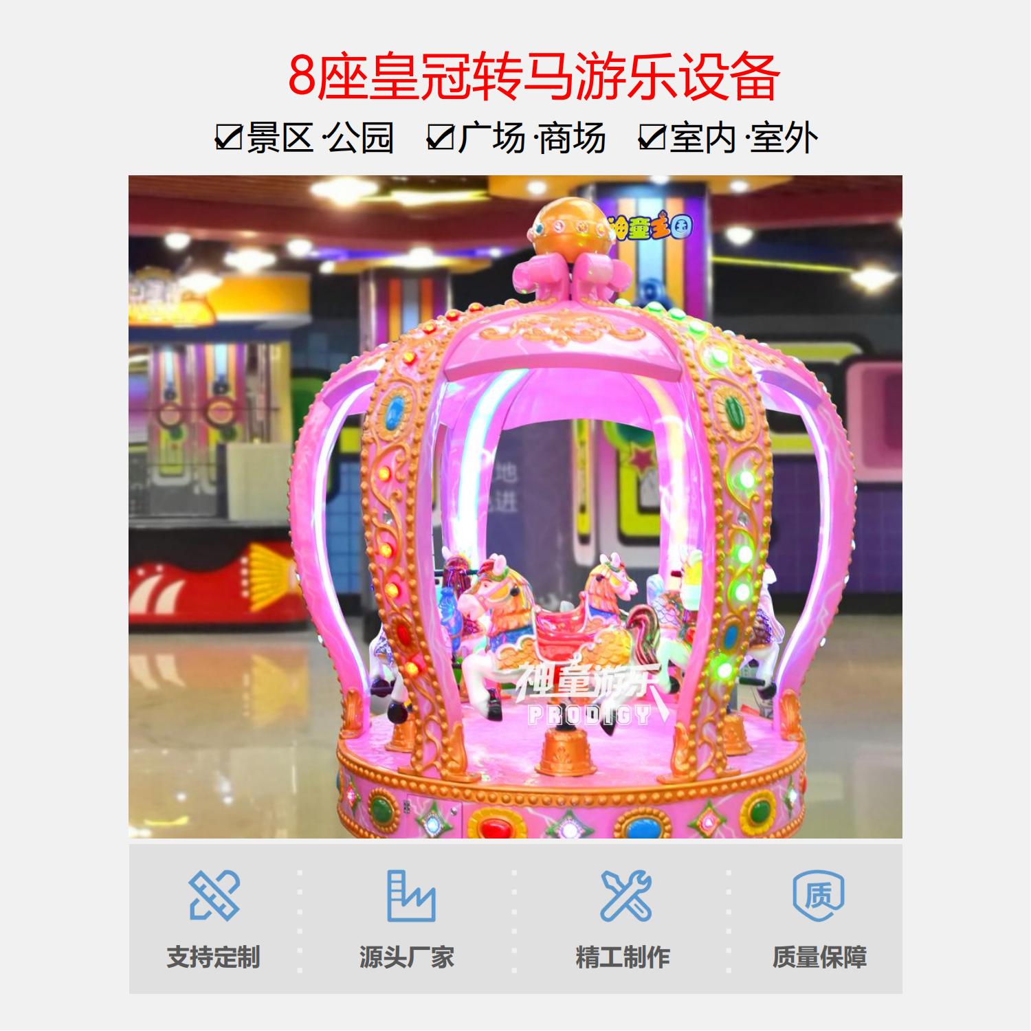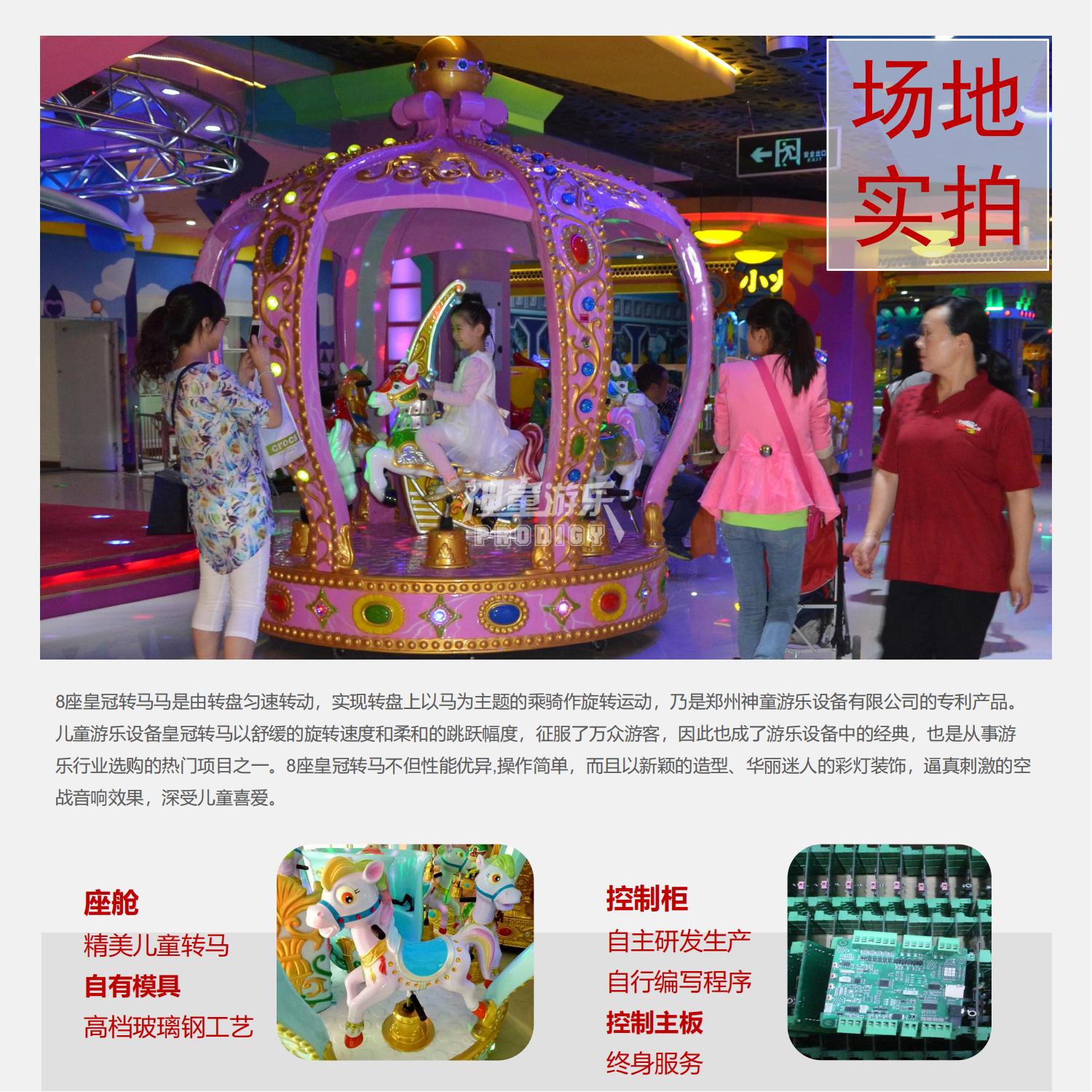 8座皇冠轉(zhuǎn)馬馬是由轉(zhuǎn)盤(pán)勻速轉(zhuǎn)動(dòng),實(shí)現(xiàn)轉(zhuǎn)盤(pán)上以馬為主題的乘騎作旋轉(zhuǎn)運(yùn)動(dòng),乃是鄭州神童游樂(lè)設(shè)備有限公司的專利產(chǎn)品。兒童游樂(lè)設(shè)備皇冠轉(zhuǎn)馬以舒緩的旋轉(zhuǎn)速度和柔和的跳躍幅度,征服了萬(wàn)眾游客,因此也成了游樂(lè)設(shè)備中的經(jīng)典,也是從事游樂(lè)行業(yè)選購(gòu)的熱門(mén)項(xiàng)目之一。8座皇冠轉(zhuǎn)馬不但性能優(yōu)異,操作簡(jiǎn)單,而且以新穎的造型、華麗迷人的彩燈裝飾,逼真刺激的空戰(zhàn)音響效果,深受兒童喜愛(ài)。