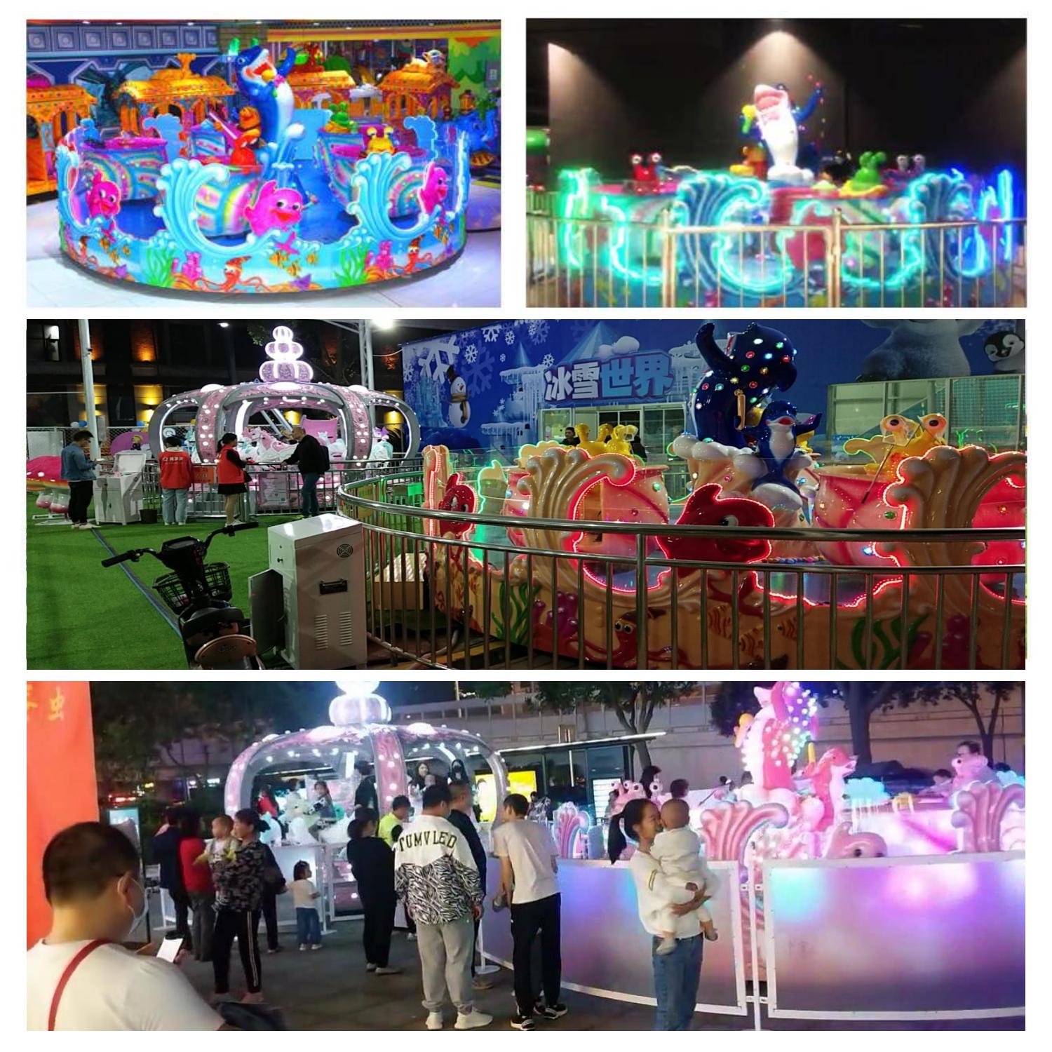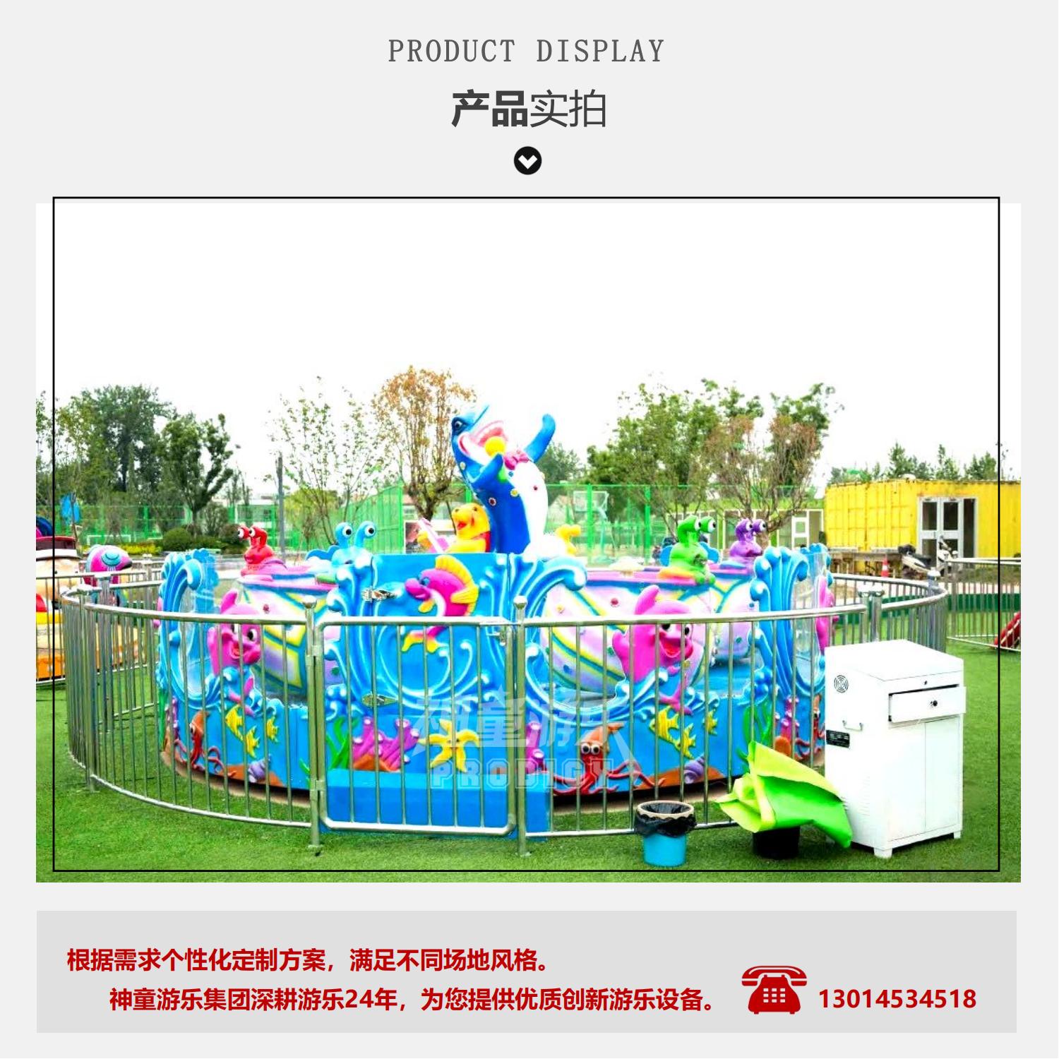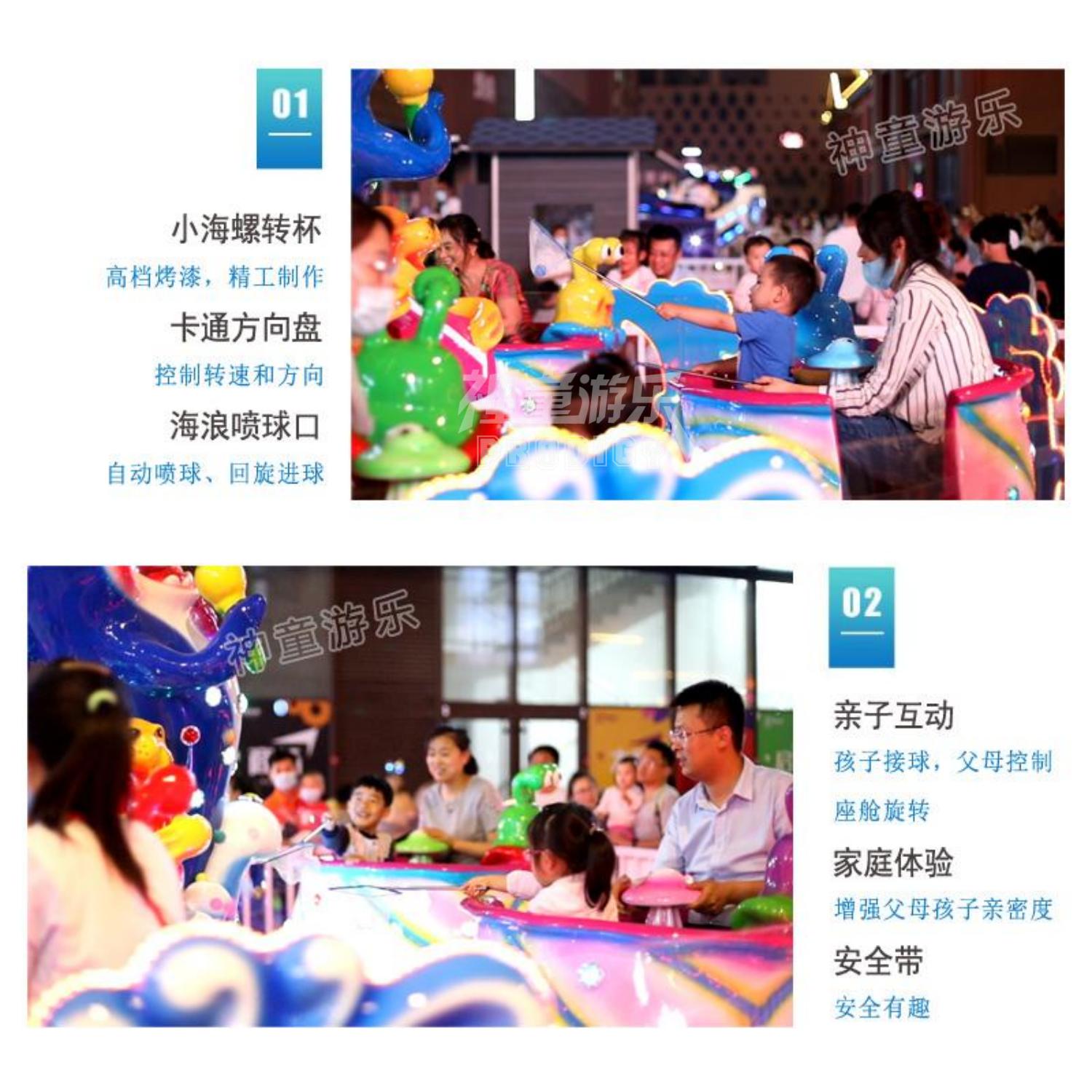 海洋大歌星是由機械、電動系統(tǒng)組成,是一種繞中心柱旋轉(zhuǎn),座艙可自由360度旋轉(zhuǎn)的噴球車游樂設備。具備轉(zhuǎn)杯+噴球功能,親子性強、互動性強,5個海螺造型轉(zhuǎn)杯,隨著整體轉(zhuǎn)盤旋轉(zhuǎn),乘客可自已控制小轉(zhuǎn)杯自轉(zhuǎn)(速度,方向均自控)旋轉(zhuǎn)的過程中,乘客更可以拿著小網(wǎng),抓取海洋動物口中噴出的歡樂彩球,特有自動回球裝置經(jīng)營維護更方便是公園商業(yè)廣場景區(qū)主題樂園里面非常受歡迎的海洋主題游樂設備。