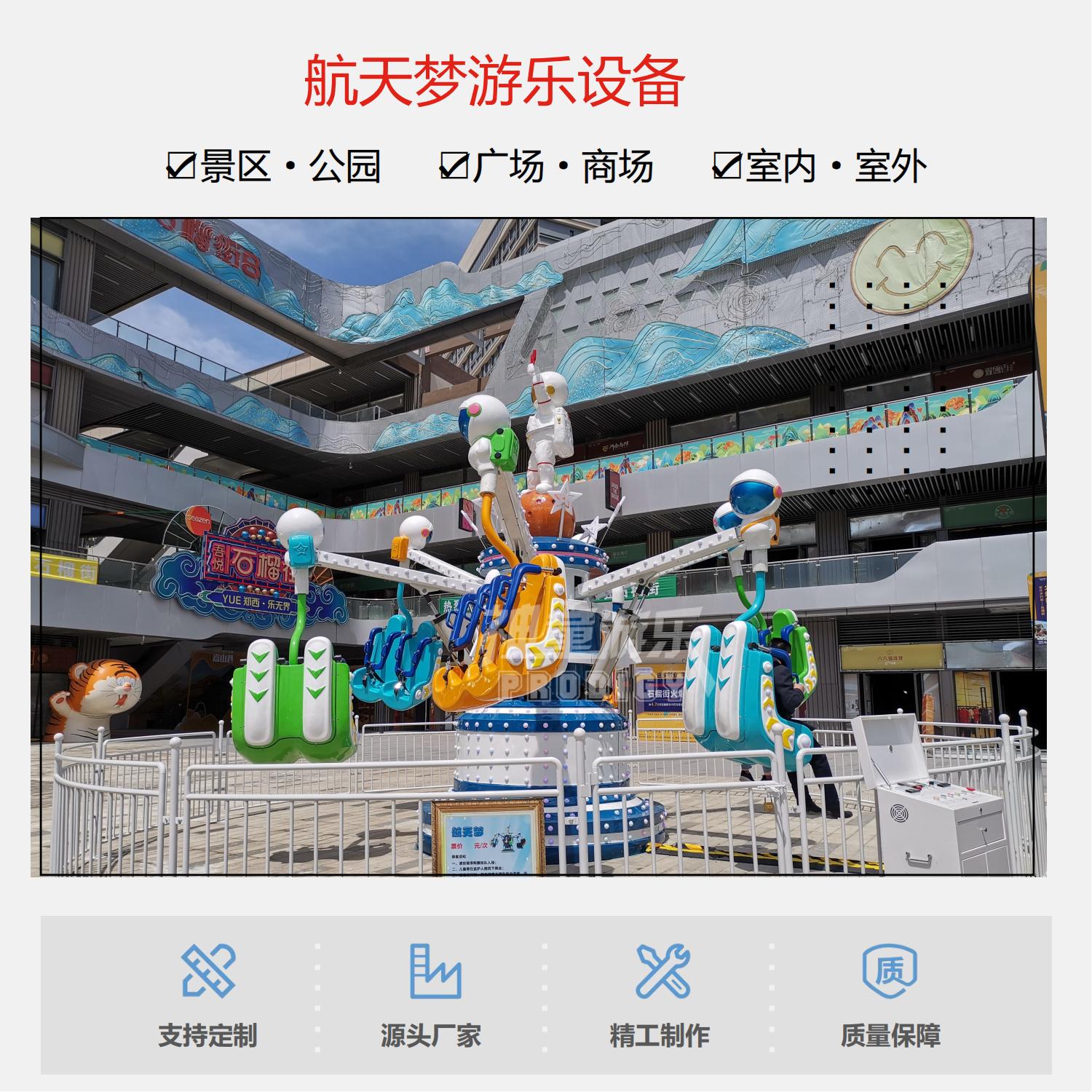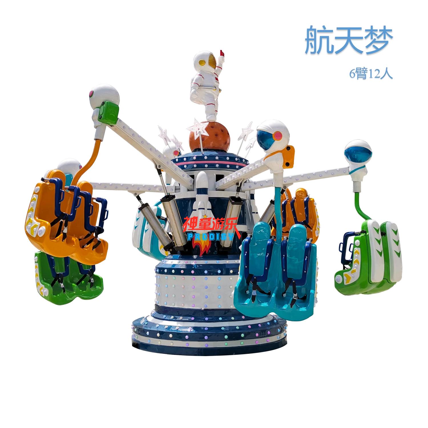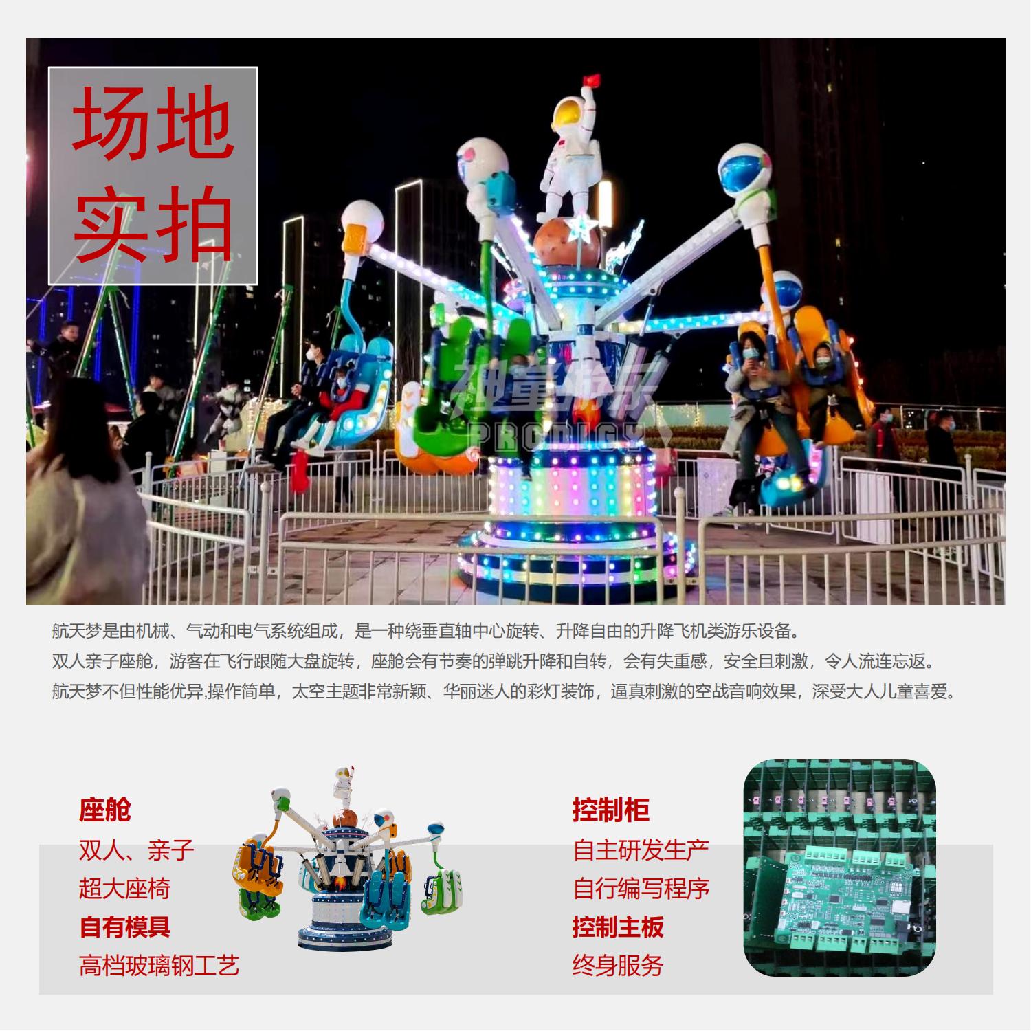 航天夢(mèng)是由機(jī)械、氣動(dòng)和電氣系統(tǒng)組成,是一種繞垂直軸中心旋轉(zhuǎn)、升降自由的升降飛機(jī)類游樂設(shè)備。 雙人親子座艙,游客在飛行跟隨大盤旋轉(zhuǎn),座艙會(huì)有節(jié)奏的彈跳升降和自轉(zhuǎn),會(huì)有失重感,安全且刺激,令人流連忘返。 航天夢(mèng)不但性能優(yōu)異,操作簡(jiǎn)單,太空主題非常新穎、華麗迷人的彩燈裝飾,逼真刺激的空戰(zhàn)音響效果,深受大人兒童喜愛。