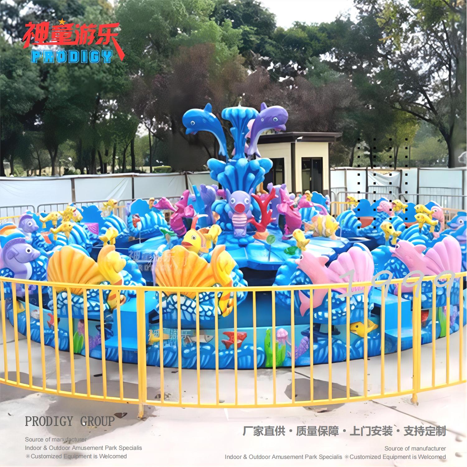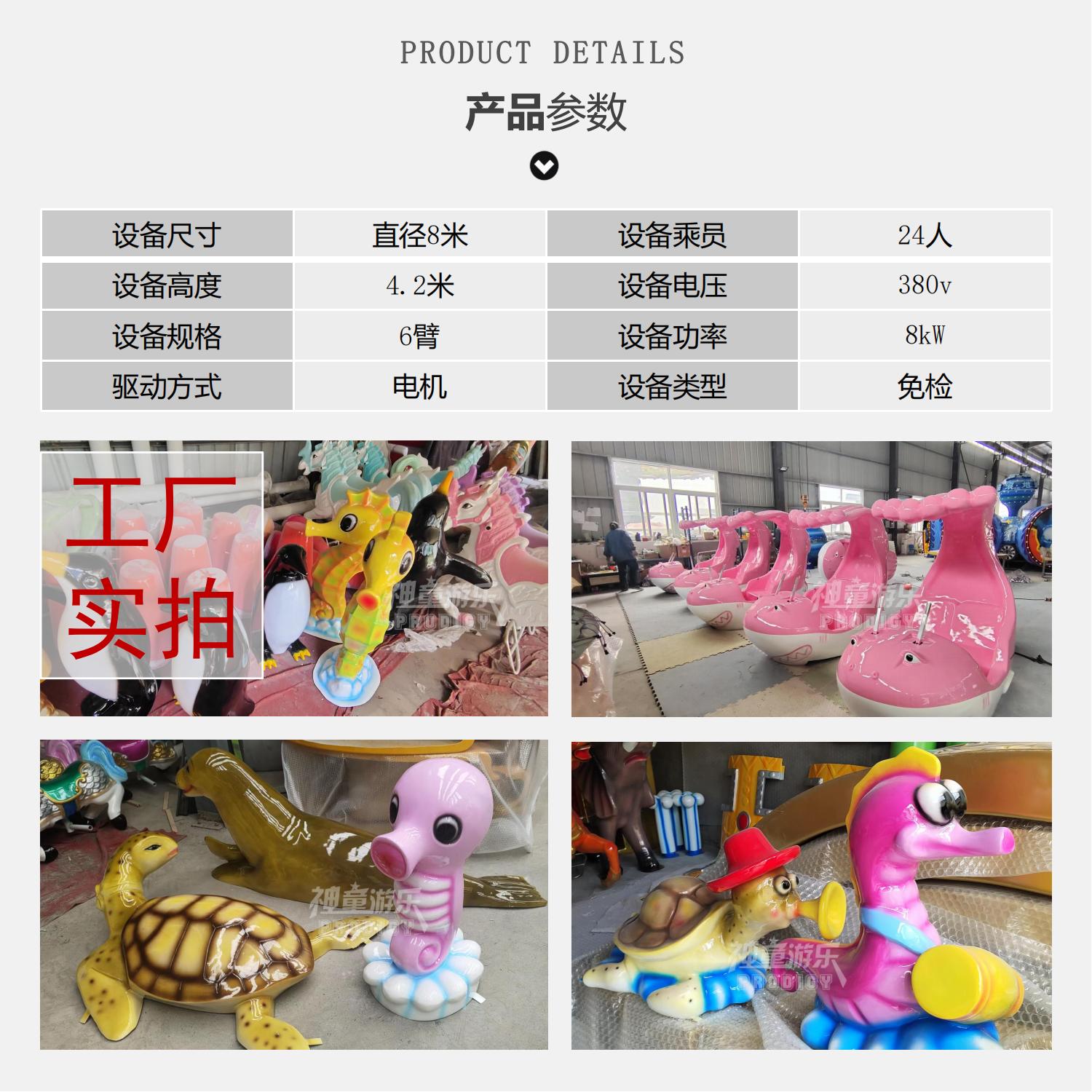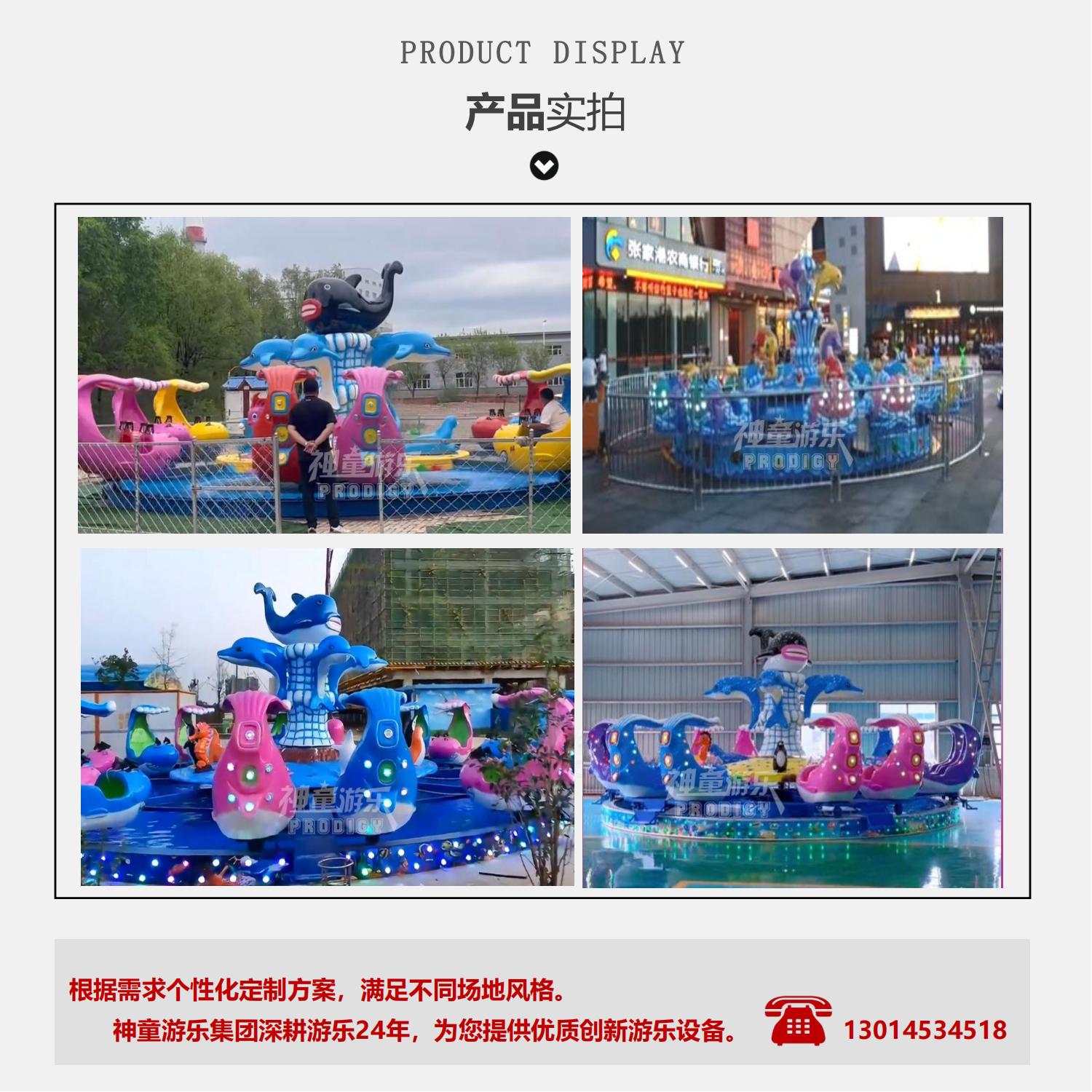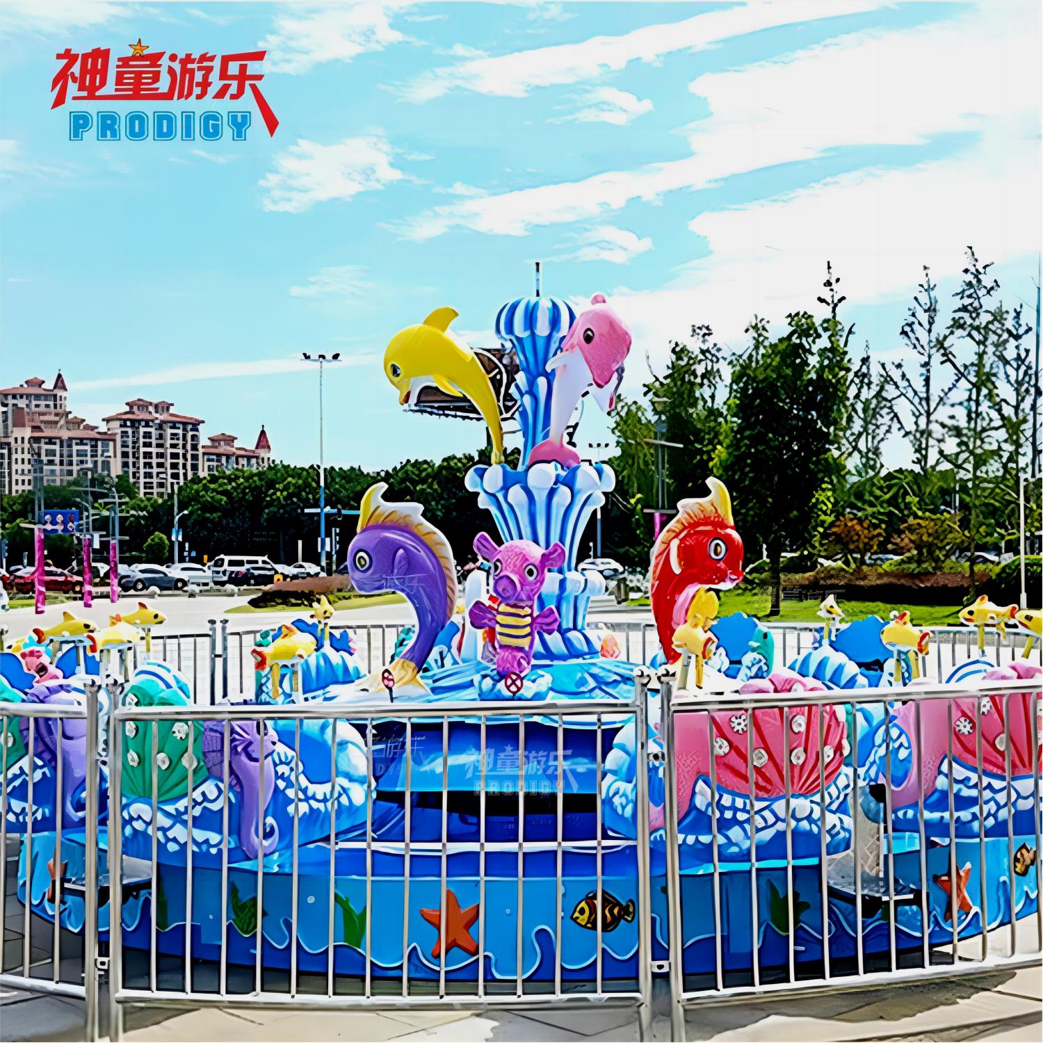 激戰(zhàn)鯊魚島設(shè)備內(nèi)景中間是一個(gè)巨大的鯊魚橫在中間,周邊是四個(gè)小鯊魚環(huán)繞旋轉(zhuǎn)噴水,景觀非常壯觀。圓盤上有些飛魚,烏龜?shù)葎游锝M合成外觀鮮艷炫目的激戰(zhàn)鯊魚島游樂設(shè)備,外觀大氣、色彩明艷動人。當(dāng)這款設(shè)備運(yùn)作時(shí),乘客們可以拿起座艙上自帶的噴水槍開始攻擊中間的大鯊魚,互動性、客戶體驗(yàn)感非常好。