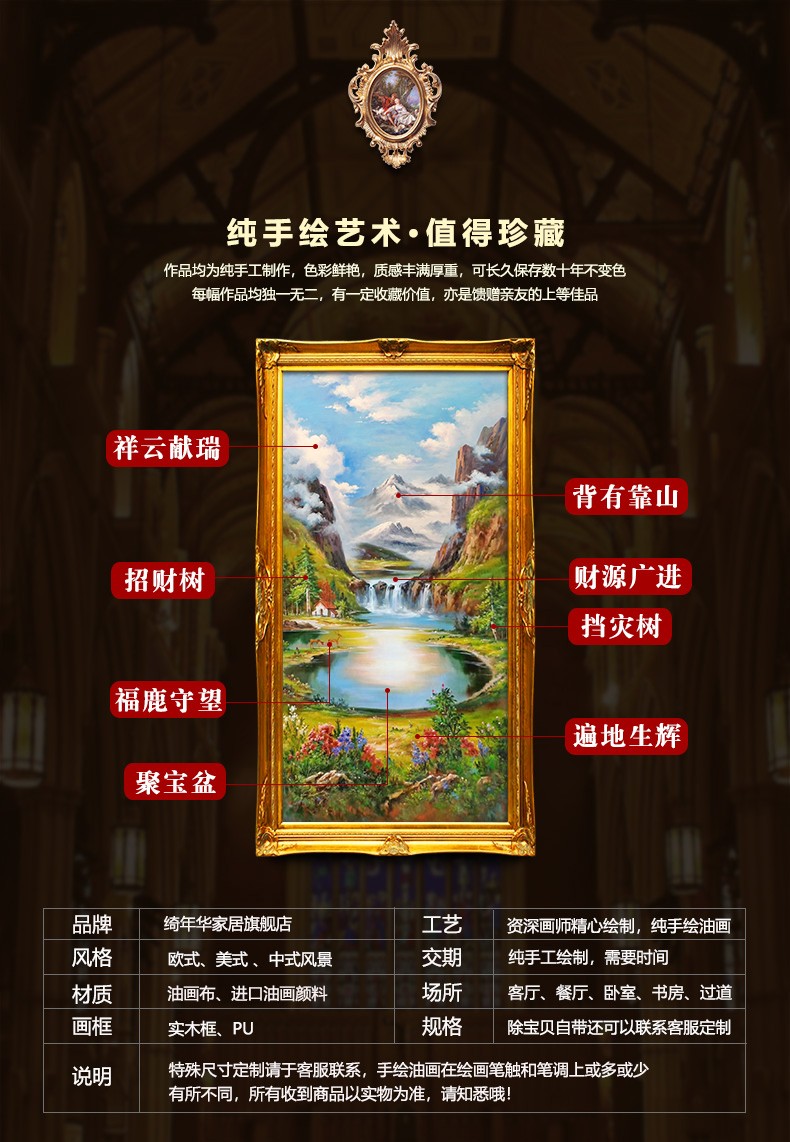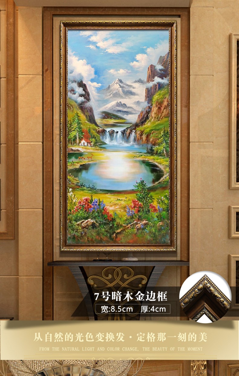 玄關畫豎版純手繪油畫裝飾畫聚寶盆歐式山水風景走廊裝飾墻壁掛畫