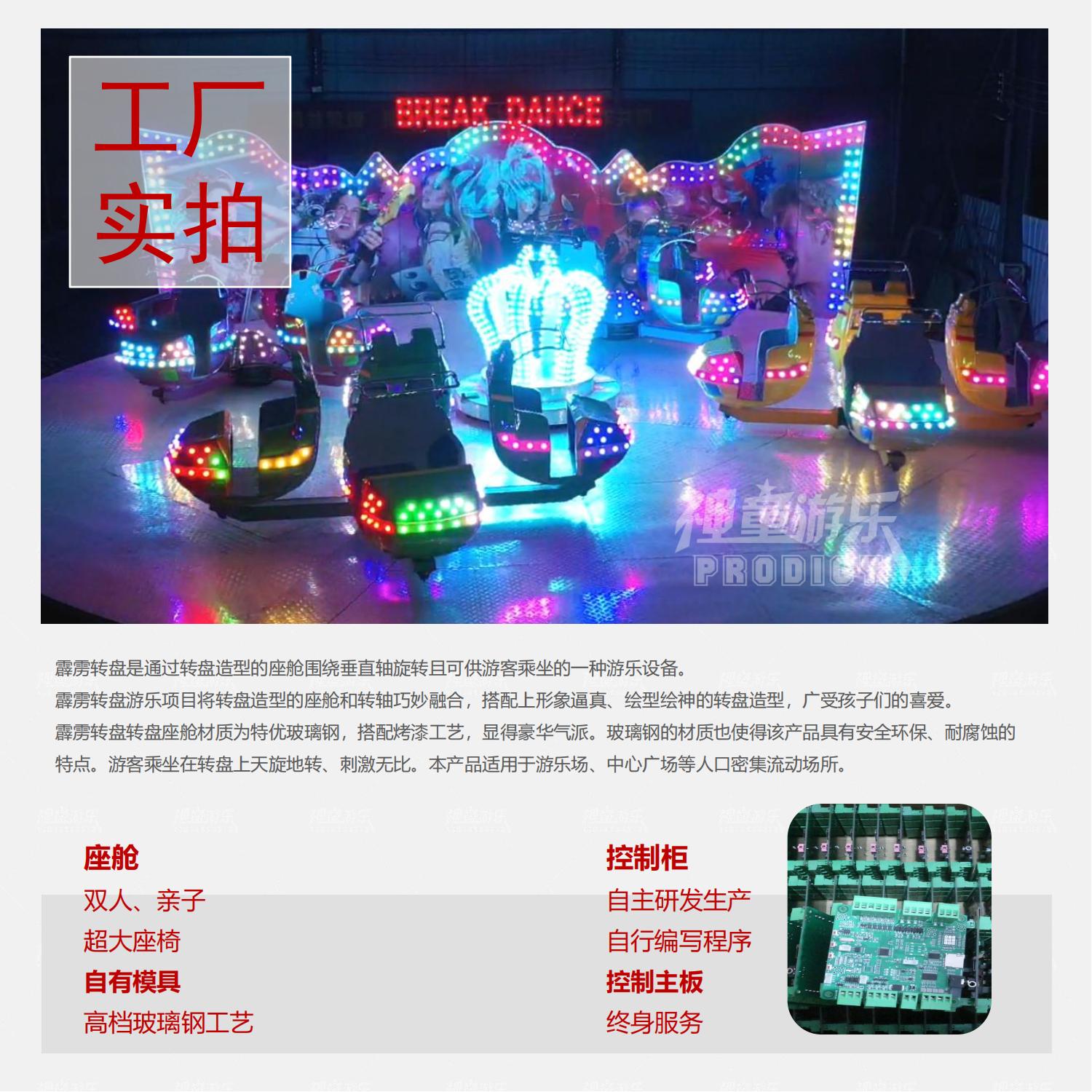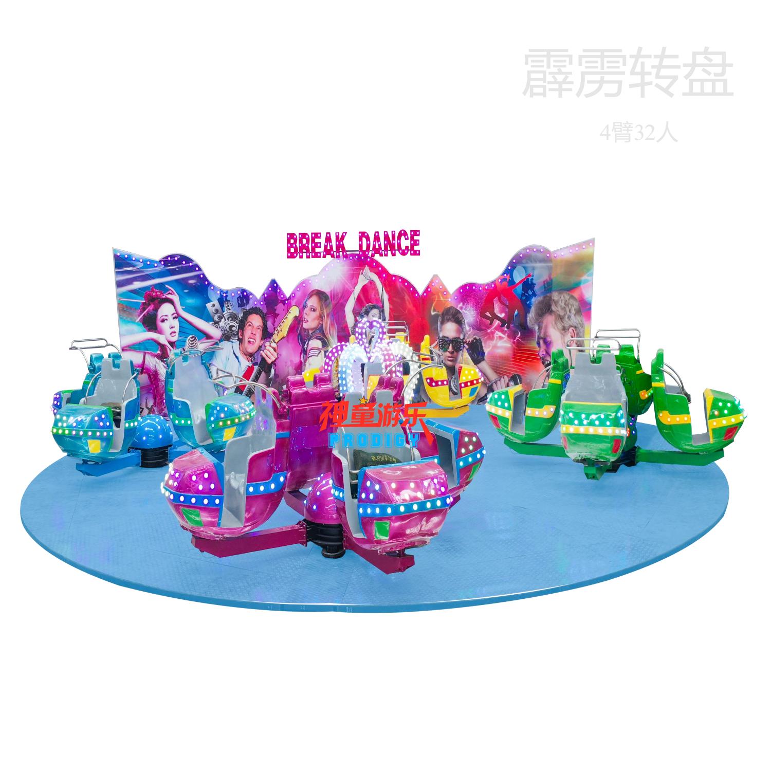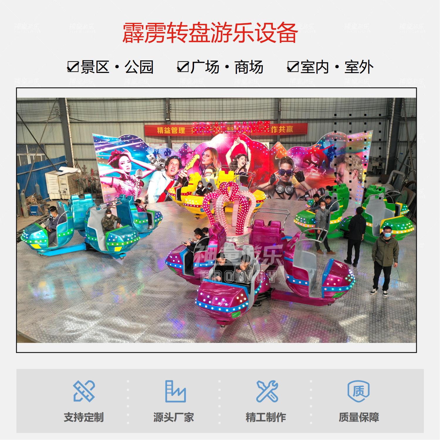 霹靂轉(zhuǎn)盤是通過(guò)轉(zhuǎn)盤造型的座艙圍繞垂直軸旋轉(zhuǎn)且可供游客乘坐的一種游樂(lè)設(shè)備。霹靂轉(zhuǎn)盤游樂(lè)項(xiàng)目將轉(zhuǎn)盤造型的座艙和轉(zhuǎn)軸巧妙融合,搭配上形象逼真、繪型繪神的轉(zhuǎn)盤造型,廣受孩子們的喜愛(ài)。