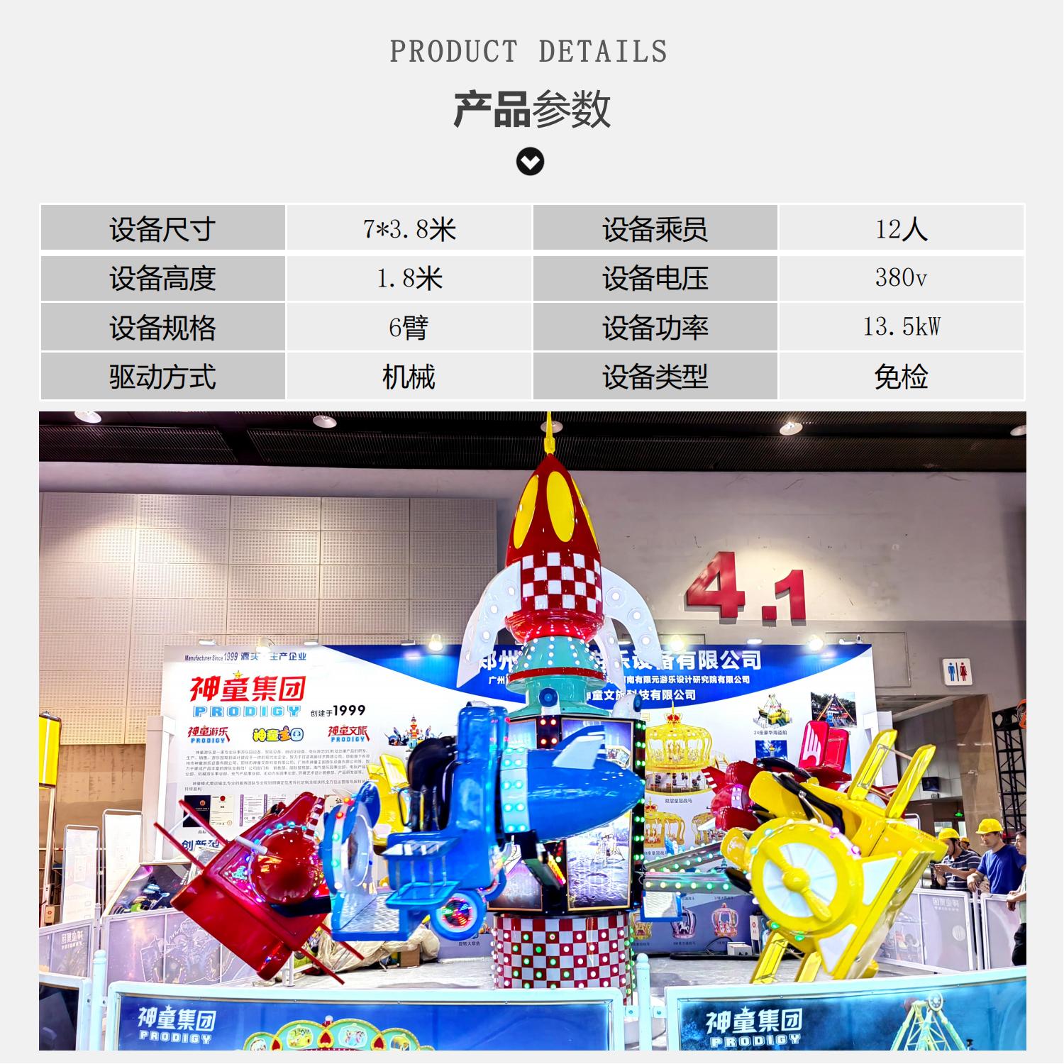 太空飛機(jī)是神童自主研發(fā)的一款新型游樂設(shè)備,新玩法:主體旋轉(zhuǎn)+座艙升降+飛機(jī)側(cè)翻+飛機(jī)360翻滾帶您遨游太空,體驗(yàn)飛行員的樂趣。